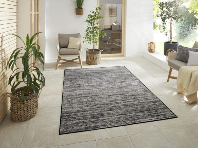 Disse flotte minimalistiske fladvævede tæpper er lavet 100% Polypropylen, hvilket gør dem ekstremt slidstærkt og nemme at rengøre. Vælg mellem forskellige farver og mønstre for at matche din personlige stil og indretning. Uanset om det er stuen, terrassen eller gangen, vil dette tæppe skabe en atmosfære af hygge og liv.
