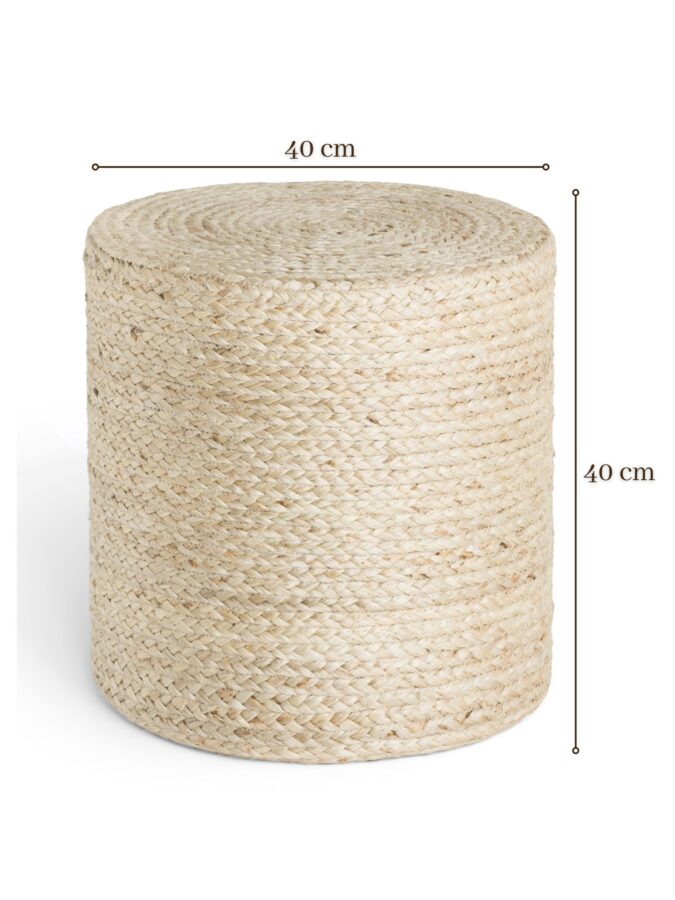 Naturlig & holdbar: Puffen er fremstillet af 100% naturlig jute og er GRS-certificeret – et robust og stilfuldt valg til dit hjem.