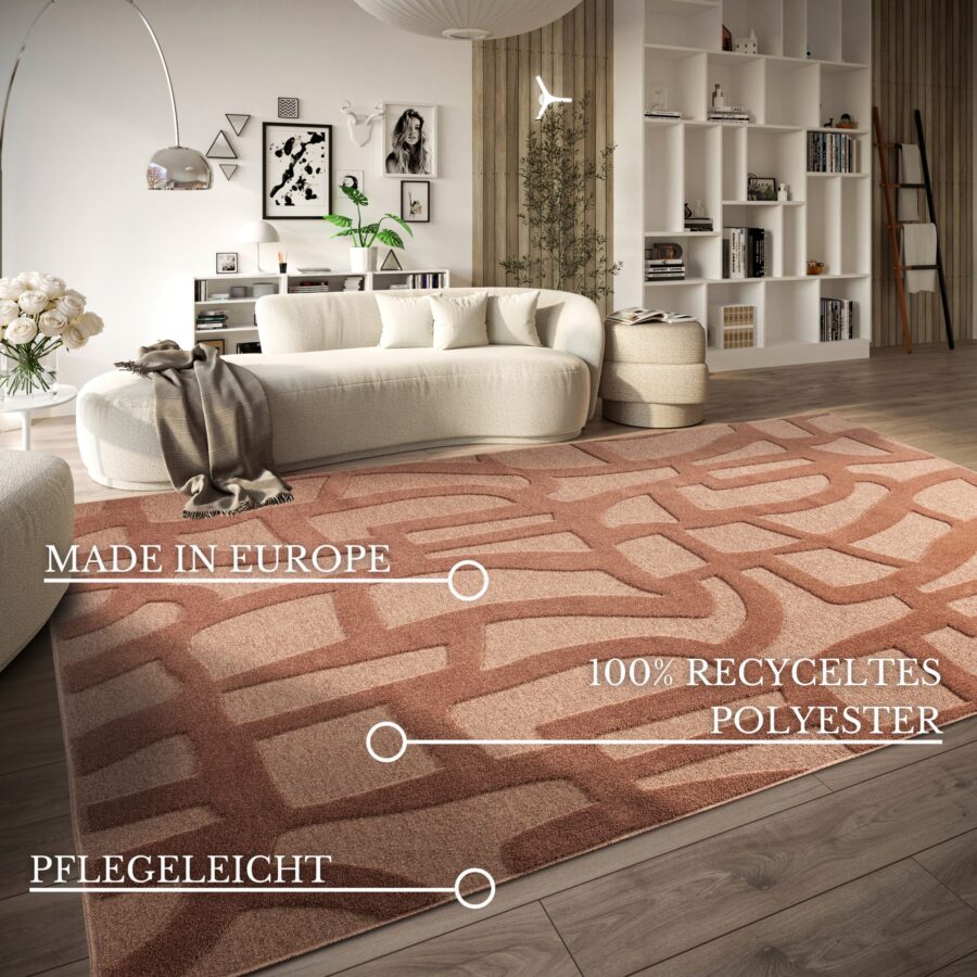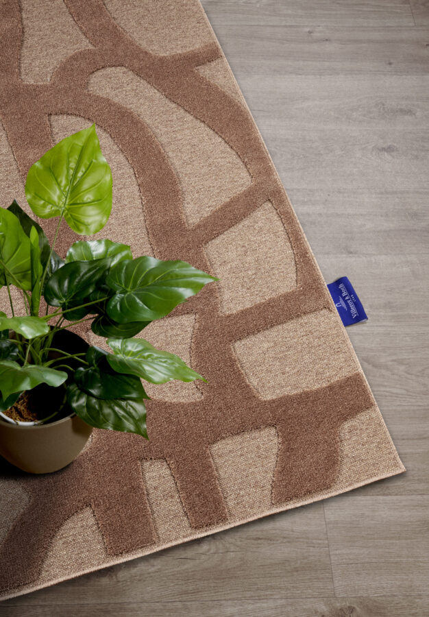 Tæpper i et moderne grafisk design med high-low effekt, velegnede til gulvvarme, robuste og nemme at vedligeholde.